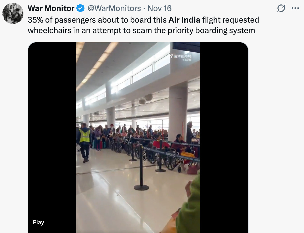 But that was then. In the here and now, air travel is defined by fist fights, prickly flight attendants, a total absence of manners (such as a recent incident involving a woman playing videos out loud on her phone for the flight2), and scammers trying to take advantage of accommodations offered thanks to our better nature. The Concorde is long gone. And so frumpy third-worlders shrink-wrapped in spandex trade blows and rip off each other’s wigs while taking the civilizational marvel that is air travel entirely for granted even as it falls to pieces around them.
