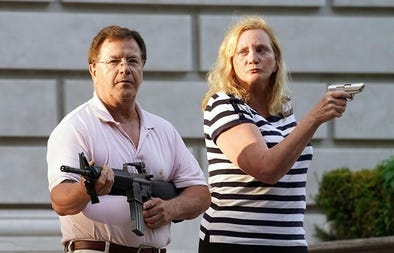 Finally, sometimes it all isn’t enough. The private security forces and police are overstretched, the neighborhood fortifications not sturdy enough, and the police entirely absent as a rampaging mob of criminals, generally rioters, heads the way of the few productive people left—those present find themselves in a position not unlike the McCloskeys, a Rorke’s Drift in the modern day.