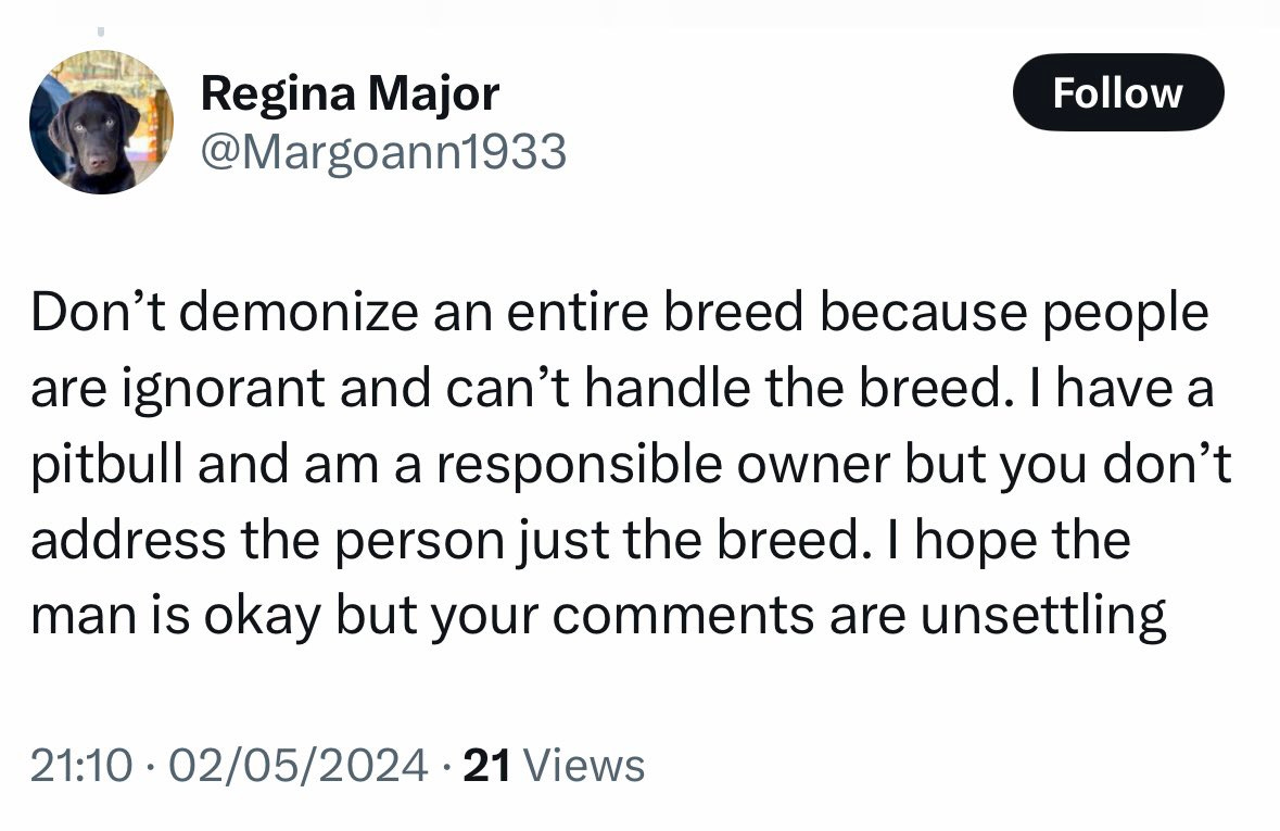 And so posts about why we shouldn’t demonize the pit bull breed are almost inevitably followed by those like the one below. The irrationally violent, heat-seeking missile with teeth, will turn on without rhyme or reason and maul its loving owner, no matter how stridently its owners defend it online.