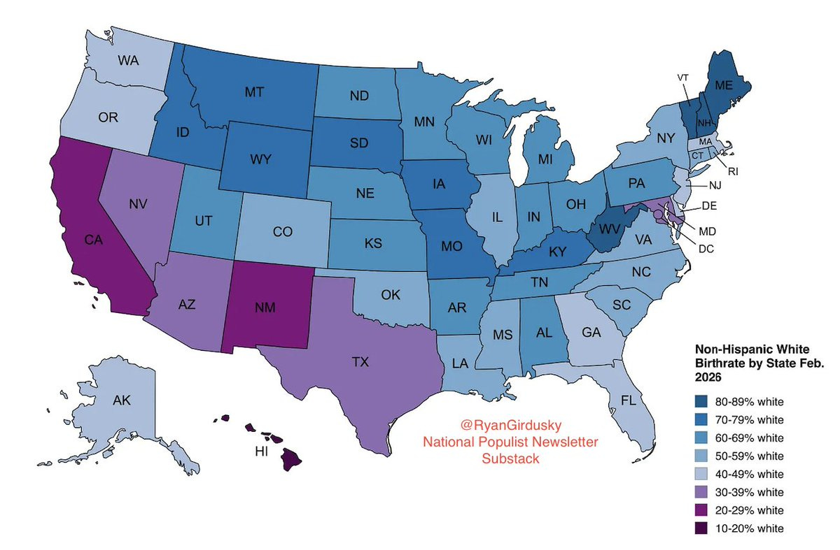 So, if the border remains defended—the main thing Republicans can do and why it is so important to not give into despair and hand the country to the race communists—America has a chance of being populated primarily by the sorts of people who read this publication in just a few generations. How exciting!