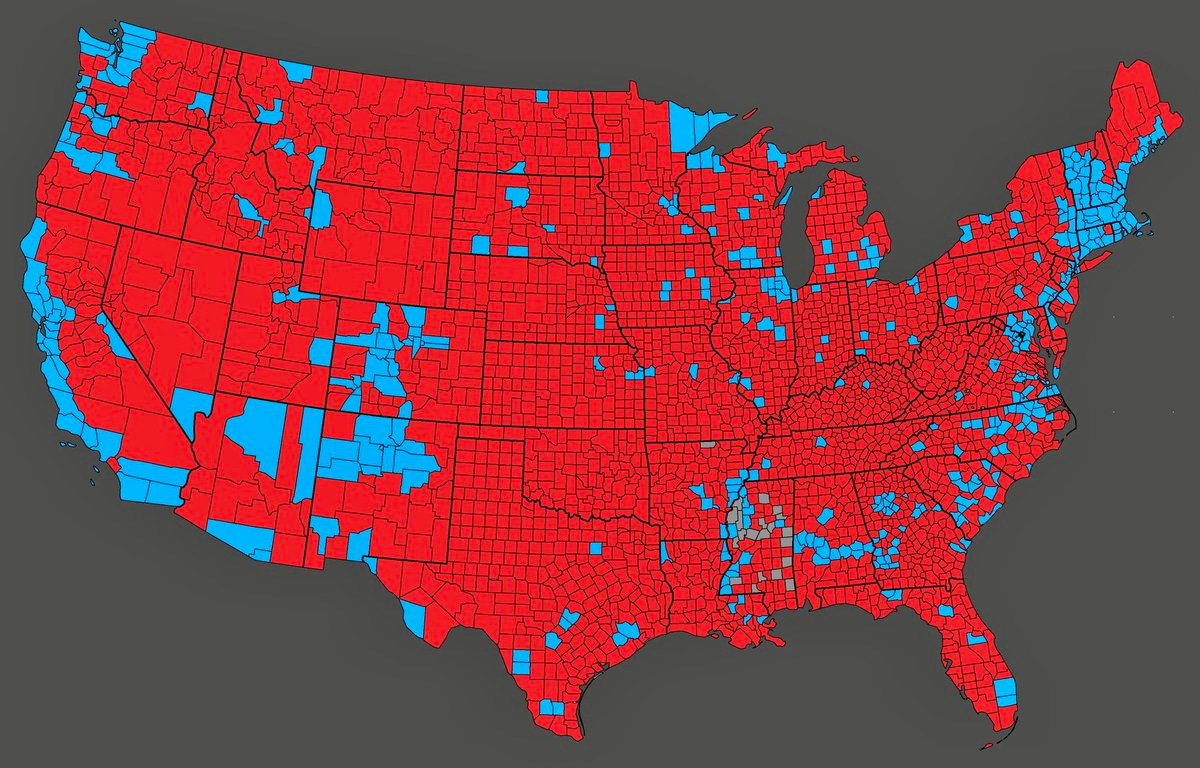 In case after case, the same story is true: the crime and Danegeld situations, along with all the attendant matters like corruption and dysfunction, remain unresolved because of the underclass-inhabited hive cities. They dominate their locality. They carry serious sway in red states, and they utterly dominate blue states, treating the rural hinterlands like satrapies under their heel. They even shape national politics. Hence why Congress was taking a knee while wearing Kenti cloths for George Floyd, and why the map of every election looks like this: