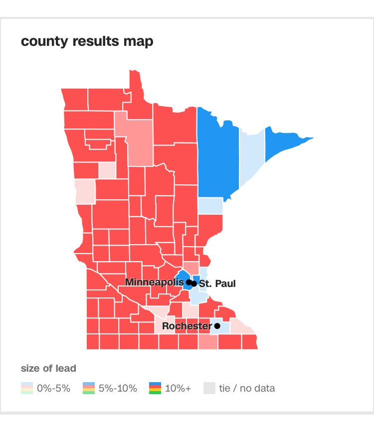 Minnesota is a great example: pretty much all of the state is red, except for the urban hives, and the ballot harvesting within those is enough to turn the tide and make it one of the most radically leftist states in America. It’s a relatively small number of votes that turn the tide, but the monolithic nature of the ballot-harvested hive bloc is enough to consistently turn the tide.7