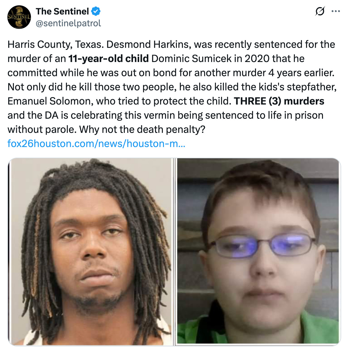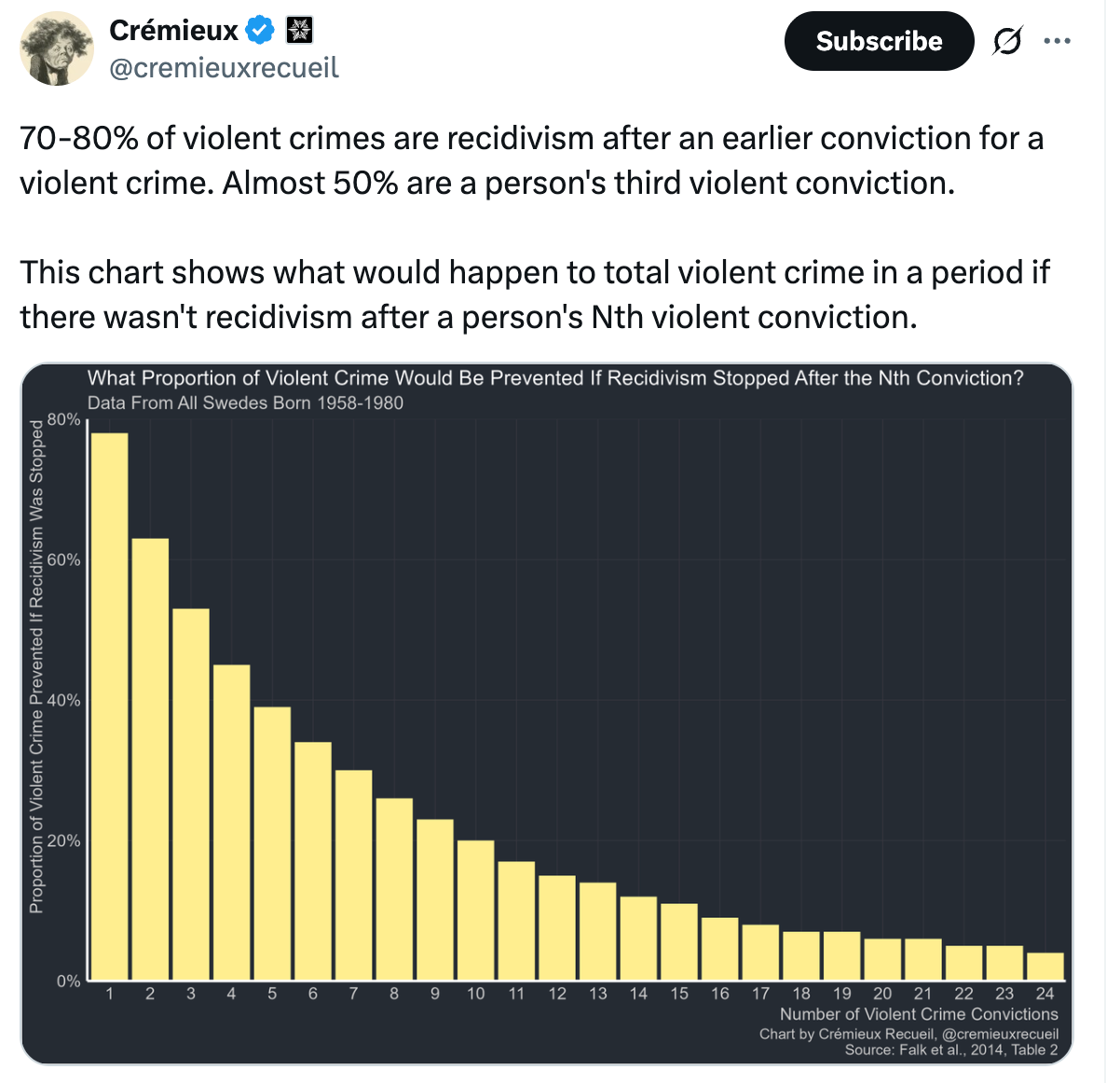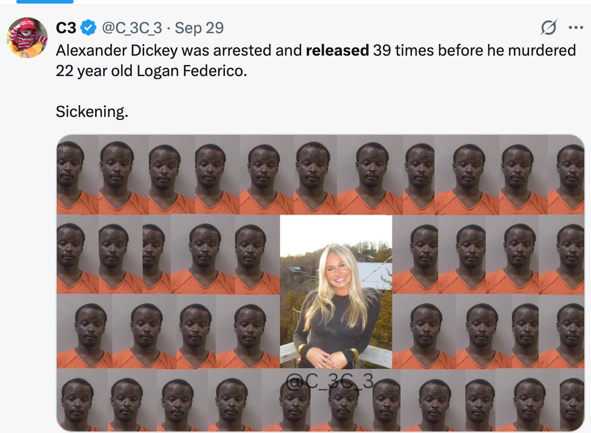 In the wake of Iryna Zarutska’s horrific murder at the hands of fourteen-time arrestee Decarlos Brown Jr., one of the trends that has taken off on X—one perhaps enabled by the death of the DOJ’s Community Relations Service1—has been to call attention to similar crimes, where lifelong thugs were let off by the justice system despite the horrific nature of the crimes they committed. Often, they then went on to commit yet worse crimes.