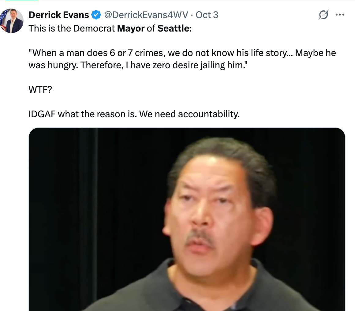 Then there is the Mayor of Seattle, who insists that felons who have been caught committing crimes seven or eight times might be stealing your wallet or a pair of sneakers because they are “hungry,” and thus no criminals should be jailed.