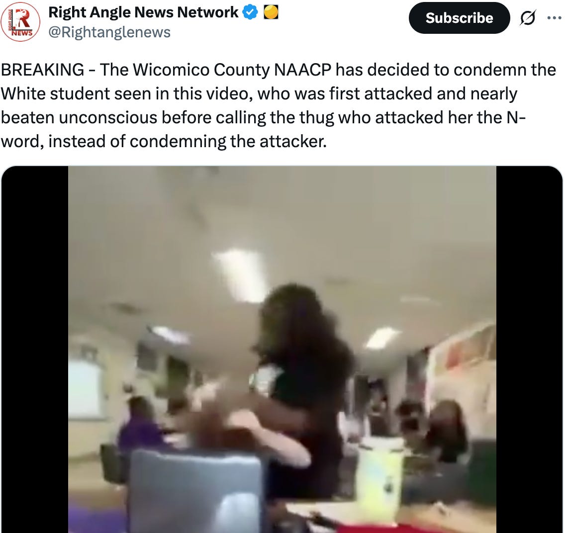 A thug in Wicomico County, Maryland, assaulted a female classmate and beat her half to death. The female victim was then blamed for reportedly saying a mean word to the thug who attacked her…after having been attacked.